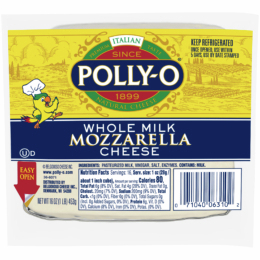 Polly-O Low Moisture Mozzarella is made with high levels of butterfat and a flavor-enhancing vinegar set—delivering a fresh, rich mozzarella flavor. Its excellent stretch and even, uniform melt delivers superior coverage and reheats beautifully. It blends well with other cheeses, making it the perfect addition for pizzas, sandwiches and entrées. All of our low moisture products are all natural and free of artificial colors, flavors and preservatives.